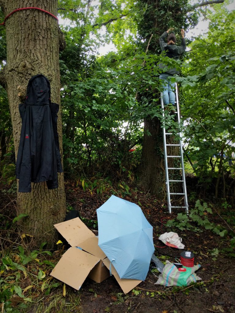 On the day of the install, quite naturally, it rained. Heavily. The night before was a huge storm across the south of England so we were dreading the worst when we arrived on site. Luckily the oaks has survived apart from shedding a few twigs and leaves. Making sure everything was waterproof and secure had paid off for peace of mind.